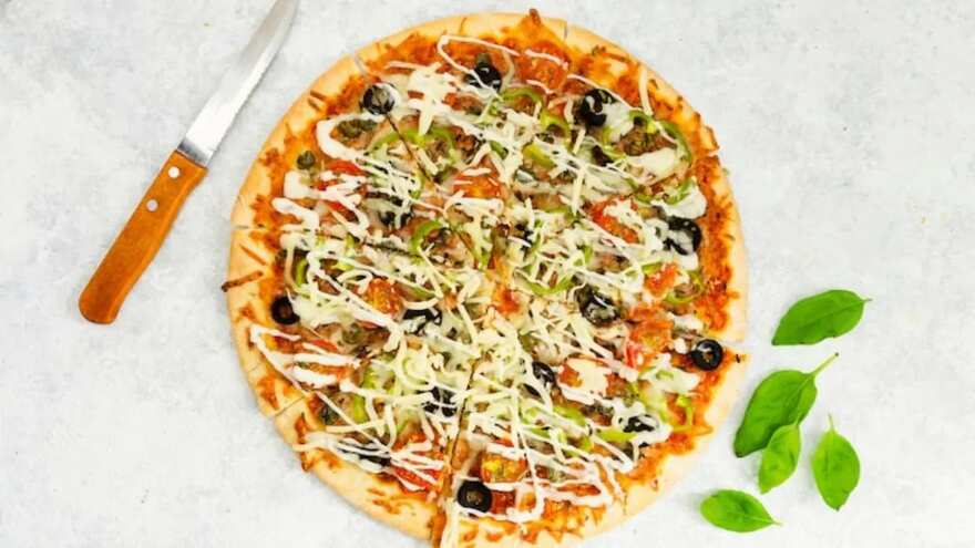 Once baked, let the pizza cool slightly before cutting into wedges. Serve warm with a bowl of curd flavoured with roasted cumin, or alongside fruit salad to complete a vrat-friendly meal.