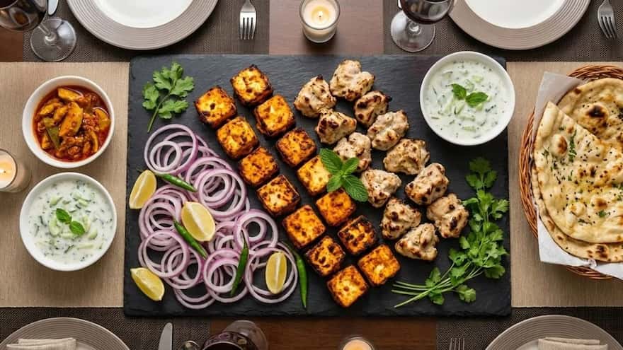 For a more substantial option that feels like a meal, focus on the charred and smoky flavours of the tandoor. This platter is perfect for a Friday night gathering where you want something hearty but still easy to share. You can use cubes of paneer tikka or small pieces of grilled chicken malai boti as your protein. Surround these with a pile of lachha pyaaz, which are thinly sliced red onion rings tossed in lemon juice and chaat masala. Add a bowl of cooling cucumber raita and some spicy lime or mango pickle for a punch of flavour. Serve it all with warm segments of garlic naan or toasted paratha wedges so people can build their own mini wraps.