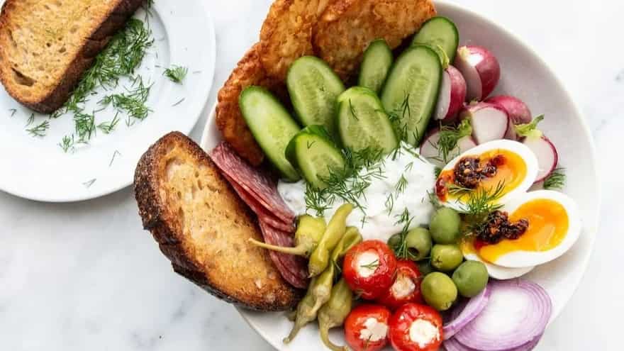 At its core, this plate is an assembled meal. It relies on the art of curation rather than the skill of cooking. The fundamental idea is to gather various small portions of contrasting foods that require little to no preparation. It is often served on a single large wooden board or a ceramic platter, intended to be picked at slowly while socialising or relaxing. If you look at the most popular versions of this trend online, you will notice a specific pattern. These boards are built to look lush and overflowing, creating an immediate sense of hospitality. The typical components follow a reliable formula: