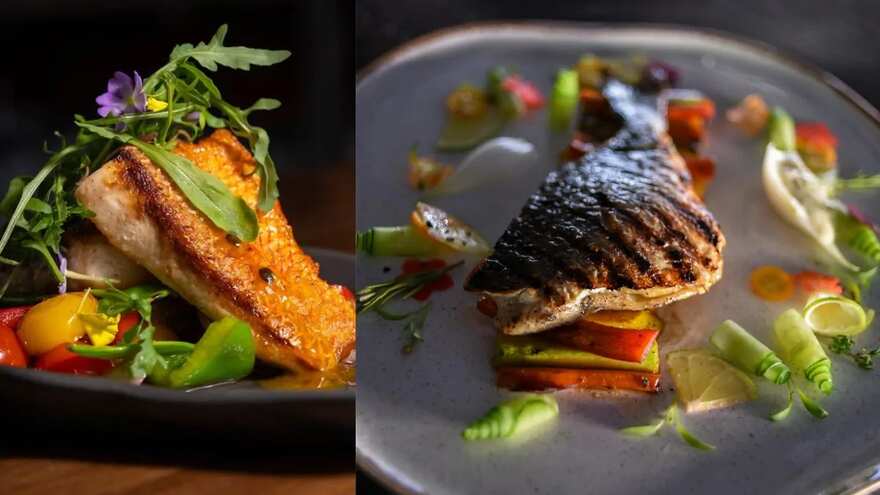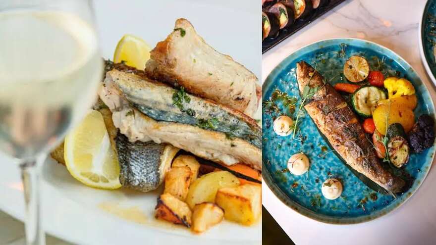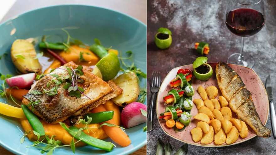 - Baked whole fish or fillets with herbs and citrus as the central dish