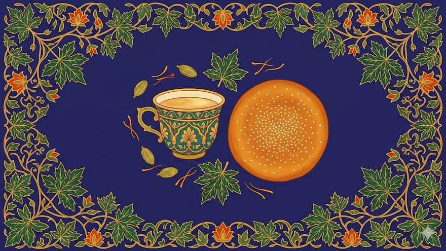 The kandur, the traditional baker, works in the half-light of morning, preparing breads that will anchor the day. Here, sheermal is not plated beside slow-cooked gravies, but dipped into tea — into kahwa, fragrant with saffron, or noon chai, salted and pink.
