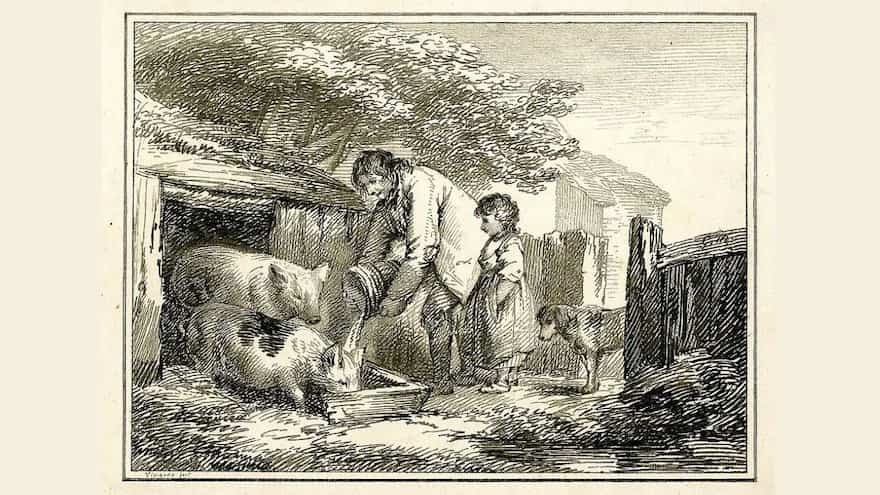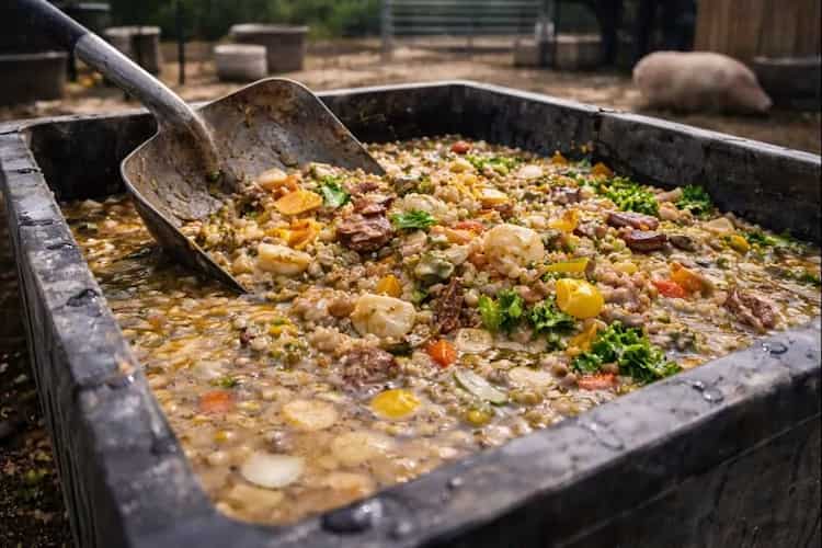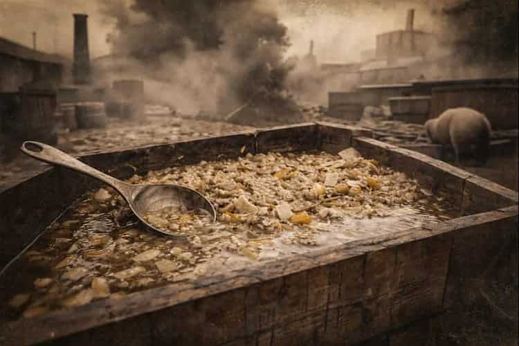In pre-industrial agriculture, slop was practical. Noble, even. Kitchen scraps were mixed with water and poured into pig troughs, closing a tight ecological loop. Humans ate. Animals ate what humans didn’t. Animals became food again. Nothing wasted. Nothing sentimental.