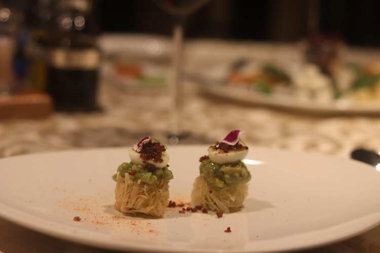 As a deeper exploration of the meal ensues, wines transform magically into crisp, tequila-forward picantes upon request. While waxing eloquent about the courses, Zubin is quizzed about how he creates a balance between having fun with ingredients and what he finds challenging; to which he mentions, “Creating the caviar menu was one of the most challenging yet enjoyable experiences. Sourcing the delicacy and combining it with the right ingredients for desirable flavours was heartening and an immense learning experience.” Submission to his process seemed inevitable neck-deep into the experience at this point and confoundingly good - an understatement to what was brought to the table now. One - a braised lamb shank sitting on a bed of creamy polenta, Sicilian lemon gremolata finished with a glaze of white wine; and second - crisp-skinned black cod served over mashed potato, accompanied by carrot cream and a citrus emulsion.