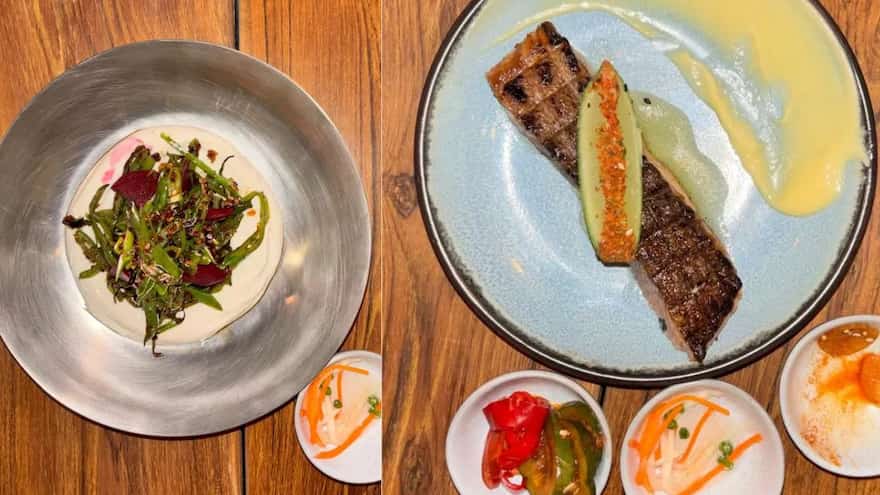 The Chicken Dashi Soup Dumplings arrive early, practically setting the tone since when Slurrp went, the weather has dipped due to the rains, and it truly was a chef’s kiss! Then there's the Smoky Market Greens, which sounds straightforward but isn't attempting to be. It takes the well-known tofu-and-greens concept found in Chinese home kitchens or even in simpler, monastic-style cooking and slightly modifies it. Fiddlehead ferns, moringa, mustard greens, and whipped tofu at the base, which is soft and almost creamy, hold up stalks and stems that typically don't receive this kind of attention, all of which are kissed by grill smoke. It's concluded with pickles and chilli crisp, which cut through everything just enough. Suddenly, it's more than simply greens; it's about texture, contrast, and striking the right balance between comfort and something a bit out of the ordinary without ever going overboard.
