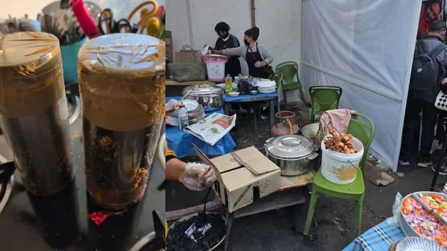 Music plays constantly. Rock bands. Folk troupes. Drums. Electric guitars. But food pulls you back. You eat standing, sitting, or leaning against bamboo rails. Smoke follows every movement.