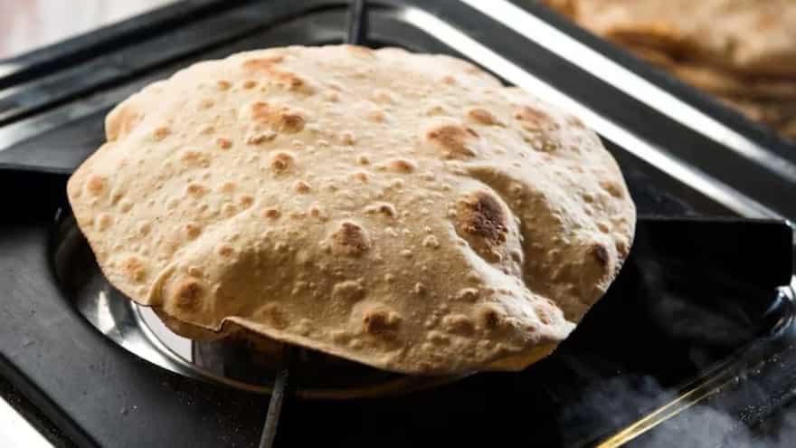 Sometimes the dough is kneaded fine, but that tawa can ruin the rotis. Cooking the rotis on full flame to feel warm will end up in overcooking the rotis. Too low heat will dry out the rotis slowly, too high heat will deliver brown spots while the inside hardens. Keep the flame medium-high, and the roti will get light bubbles quickly, then puff on direct flame or high heat. Take it off as soon as brown spots begin to appear; don’t keep it crisping more. Over-roasted rotis turn hard in just minutes, no matter how perfectly the dough was kneaded.