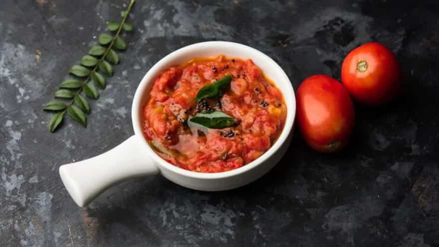 Tangy and a little sweet, tomato chutney is a loved South Indian condiment often served with idlis and dosas. Prepared by sautéing tomatoes with garlic, red chillies, and some curry leaves, it creates a rich and smoky flavour. When the tamarind or lemon juice is added to it, the tanginess further enhances the taste. What makes this chutney even more special is its versatility; it pairs not only with South Indian meals but also goes well as a spread for sandwiches and wraps. The bold taste makes even the simplest meals satisfying.