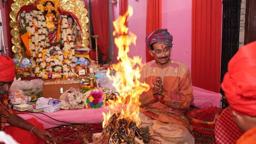The celebration takes place at our Salt Lake residence in Kolkata. It is the house where I reside with my wife, daughter, and granddaughter. Having three generations under one roof during the festivities adds a layer of warmth and continuity to the rituals that we perform.