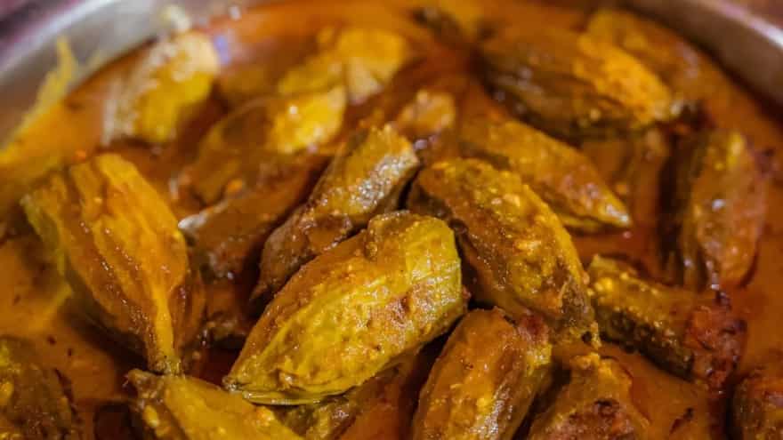 The primary bhog is prepared by the women at home. A special dish that holds immense family significance is the fish served for lunch on the third day. This is the farewell lunch for the goddess. The belief is that she was home visiting her parents, and after her two day stay, she leaves for her husband’s home on the third day. As a celebratory farewell, the parents treat her to delicious fish dishes. This year, the menu consisted of Katla fish, Chingri, and a fish head dry dish.