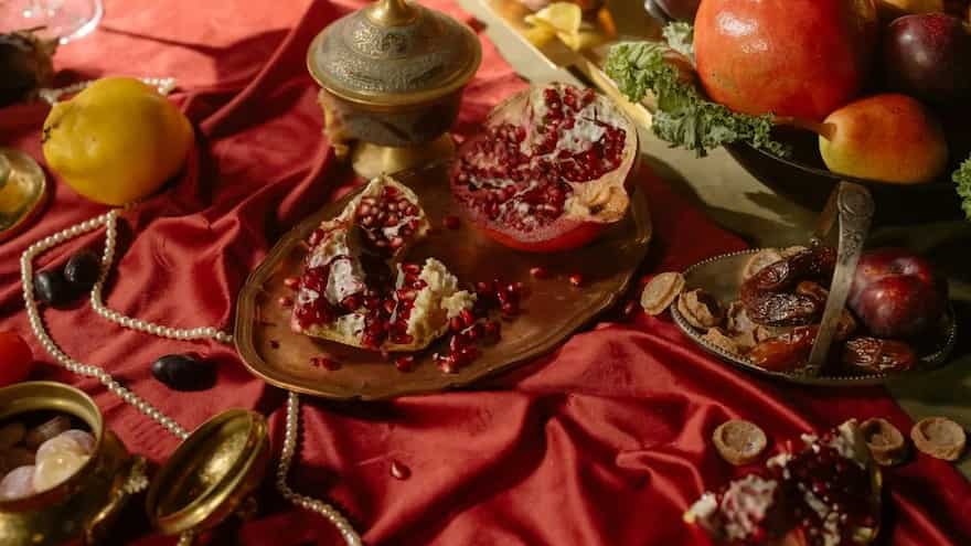 Unlike other solstice traditions that focus on hot food, Yalda emphasises preserved and symbolic ingredients. Families stay awake, read poetry, and eat slowly through the night. The act of eating itself becomes a way of passing time together until morning arrives.