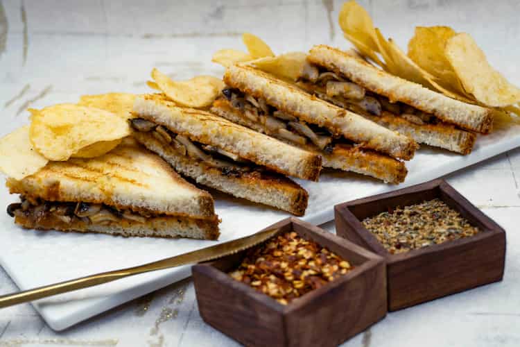 For the vegetarians and vegan adjacent, finding a hearty replacement for meat can be tricky—especially because seeking something with flavour is always a process. Toss an assortment of mushrooms in some butter and garlic before mixing with grated mozzarella and Gouda. Stuff it between thickly cut slices of sourdough or focaccia before grilling it until it’s crisp and the cheese produces a much-awaited ‘pull’. Vegans could also swap the dairy with its plant-based counterparts to have a sandwich that is just as appealing.