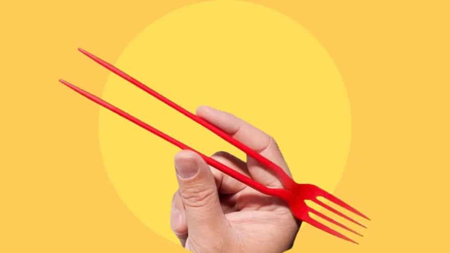 Fork + chopsticks hybrid. Perfect if you fear judgment at your go-to Pan-Asian place; useless if you have opposable thumbs and a spoon.