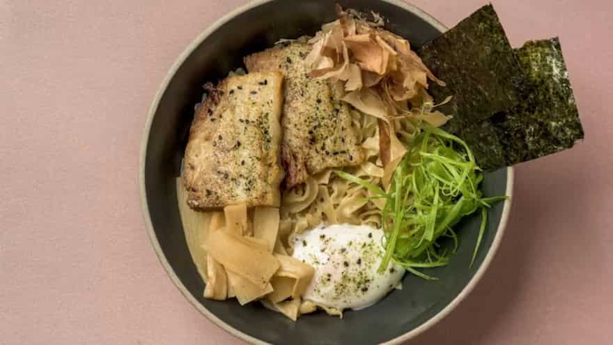 Hiyashi chuka or cold ramen salad bowl feels like a colourful mix between a salad and noodles. Chilled ramen is topped with sliced cucumber, egg, ham or tofu, and a tangy soy-based dressing. Every bite feels a bit different from the other, having crunchy, soft, savoury, and refreshing all at once. The vinegar in the dressing cuts through the heat and makes it easy to digest. It’s the kind of meal that looks rich and feels energising rather than feeling too heavy. You can adjust toppings based on what you have, making it flexible for everyday cooking.