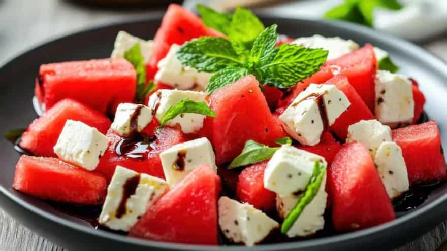 Place juicy watermelon cubes, crumbled feta, toasted pumpkin or sunflower seeds, wholegrain crackers and a few mint leaves, all on one plate. The contrast in the texture here feels extremely satisfying, i.e. sweet-salty, juicy and crisp all at once. Watermelon is naturally hydrating, whereas feta gives it a savoury richness that balances the fruit nicely. Toasted seeds give it healthy fats and crunch, making the plate feel more wholesome. A squeeze of lemon juice from the top sharpens the flavour even more and keeps the flavours bright and tangy.