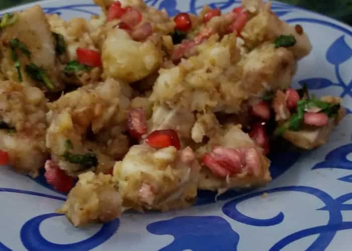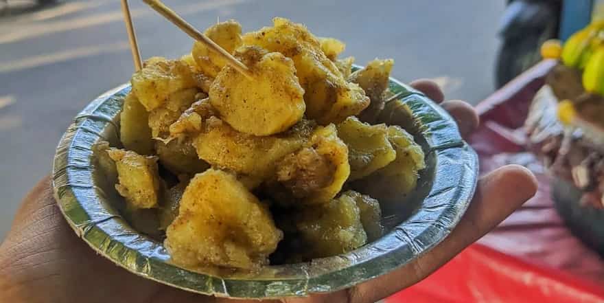 Shakarkand chaat differs from standard potato-based chaat because the base undergoes coal roasting rather than boiling or frying. Roasting reduces moisture and creates a firm yet soft texture that stays stable during mixing. The tuber develops a mild smoky note that is not present in other chaat variations. Once peeled and cut, the pieces absorb seasoning evenly because the surface remains dry. The taste combines controlled sweetness, light tang, and an earthy profile that supports spices without overshadowing them. The dish is common in winter markets across Jharkhand, where vendors roast large batches over ember beds and serve the chaat while the tubers retain warmth. The dish remains distinct because it relies on a single ingredient’s structural integrity rather than layered fried elements.