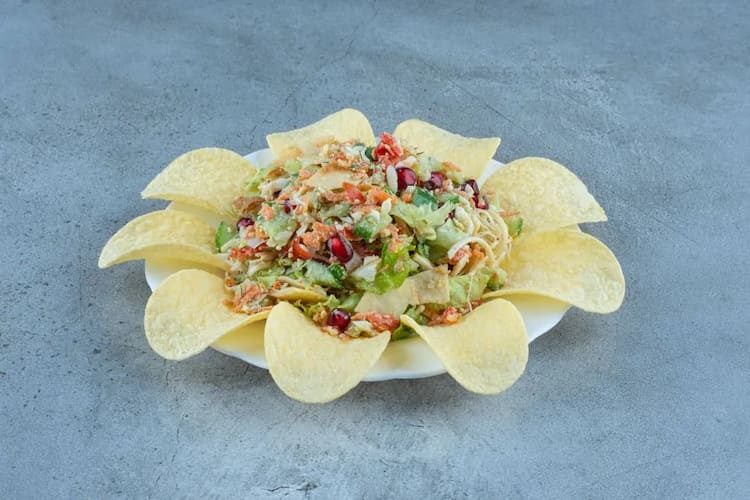 This version is the freshest option to make when you need a salad but nothing traditional and boring. Start with crisp chips as your base since they act like crunchy croutons. Chop your favourite fresh vegetables into small pieces so they layer neatly instead of sliding off. Mix cucumbers, peppers, lettuce and tomatoes for a refreshing bite. Spread the vegetables over the chips and drizzle just a little dressing on top. When assembled right, every bite has crunch, coolness and a gentle burst of flavour without feeling heavy. Add radish slices or microgreens if you want extra crispness.