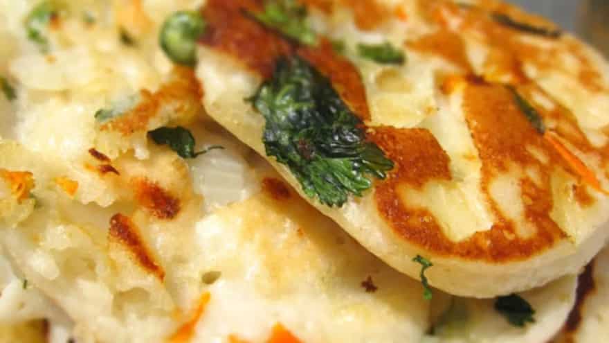 5.Before shaping, mix in chopped herbs, green chillies, and egg. Shape into flat discs.