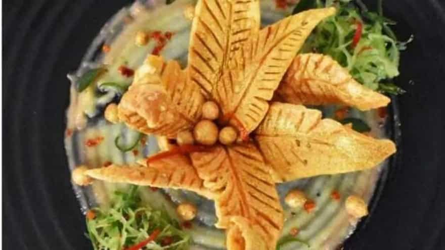 - Roll it out into long strips and give it a feather shape using your hands. Fry it in medium-hot oil. Decorate it with some golden colour.