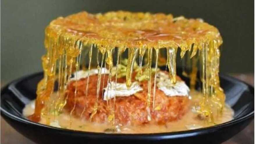 - To make a sugar cage, melt sugar in a saucepan. Once it turns brown, switch off the flame. Take a glass bowl and invert it; now carefully drizzle melted sugar on the back side of the bowl. Let it set for a few minutes, and then remove it before serving.