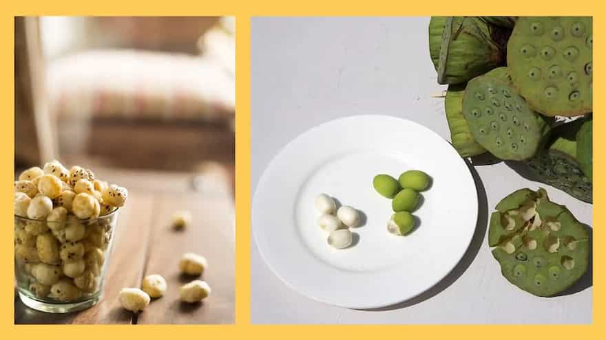 Popped lotus seeds have recently become popular in India, since being promoted as an almost no-calorie healthy ingredient. There doesn’t seem to be much familiarity among home cooks with how to cook them yet, but they have begun to appear on a few restaurant menus.