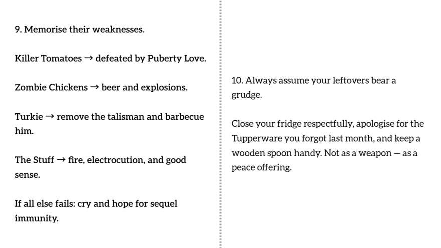 If cinema teaches us anything, it’s this: food has feelings, vengeance, and occasionally a driver’s licence. From sentient tomatoes to extraterrestrial yoghurt, horror movies have spent decades warning us that dinner might one day rise up, form a union, and demand hazard pay.