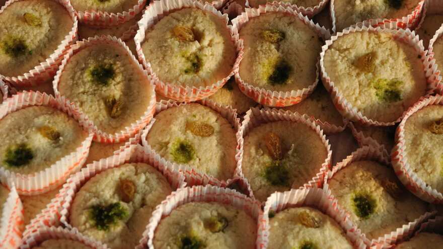 Puffed rice bound with date-palm jaggery, often shaped into balls. The East Bengal variant was softer and stickier due to the fresh jaggery used.