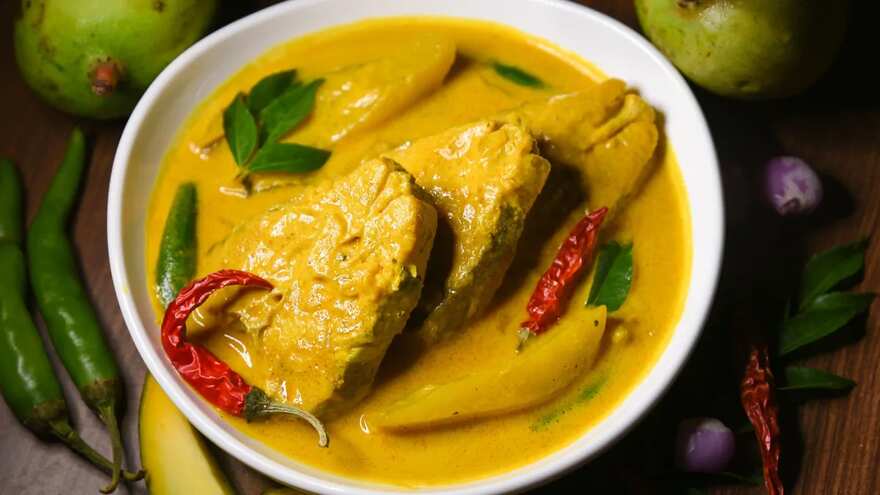 Fish — often rohu or hilsa — simmered gently in a spiced yogurt base. This dish arrived from East Bengal’s river-rich regions, where dairy was abundant and freshwater fish plentiful. The tang of the yogurt cut through the fattiness of the fish, creating a balance that Bangal cooks prized.