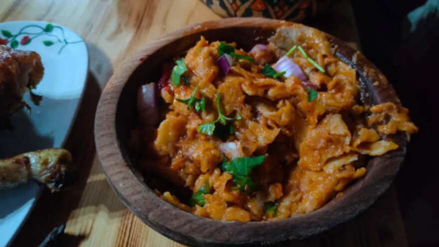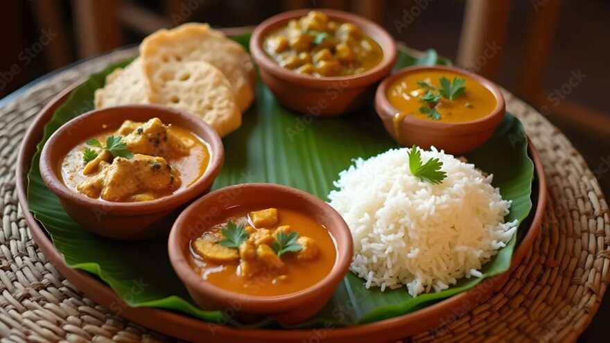 A dish born in the kitchens of the Goalondo steamer port in present-day Bangladesh, where boatmen’s wives would prepare fiery, rustic chicken curries for travellers. Made with mustard oil, onions, dried red chillies, and minimal garnish, it became a nostalgic refugee recipe in Kolkata.