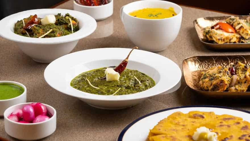 Dining at Daryaganj during winter feels like stepping into a North Indian kitchen from another era. The winter menu here delivers comfort as well as nostalgia, beginning with bhutta shorba that instantly warms you from the moment the first sip. Tandoor lovers will enjoy the paneer and chicken methi malai tikkas, as they are smoky but still soft and juicy. The star of the show is sarson ka saag with makki ki roti and bathua raita, which is earthy, decadent, and extremely satisfying. Those who love non-veg can choose saag chicken or saag meat, which is slow-cooked in a traditional style. Gulab jamun brings a sweet end to the meal on a familiar, comforting note.