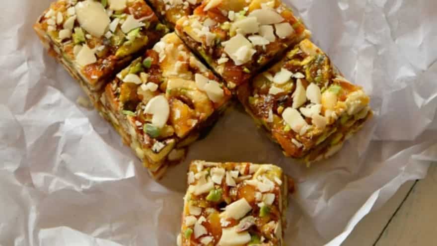 - Once cooled, cut into strips and wrap each bar with butter paper and then with aluminium foil.