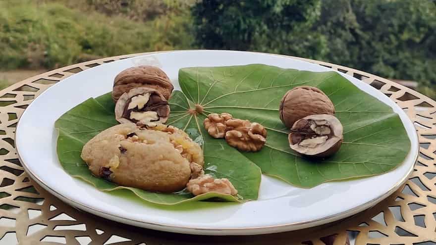 - Serve warm, garnished with a few crushed walnuts or sliced almonds.