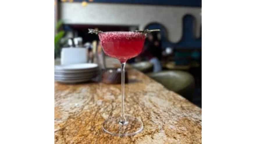 - If desired, add a dash of blue curaçao for a striking visual contrast and top with a sugar-coated rosemary sprig.
