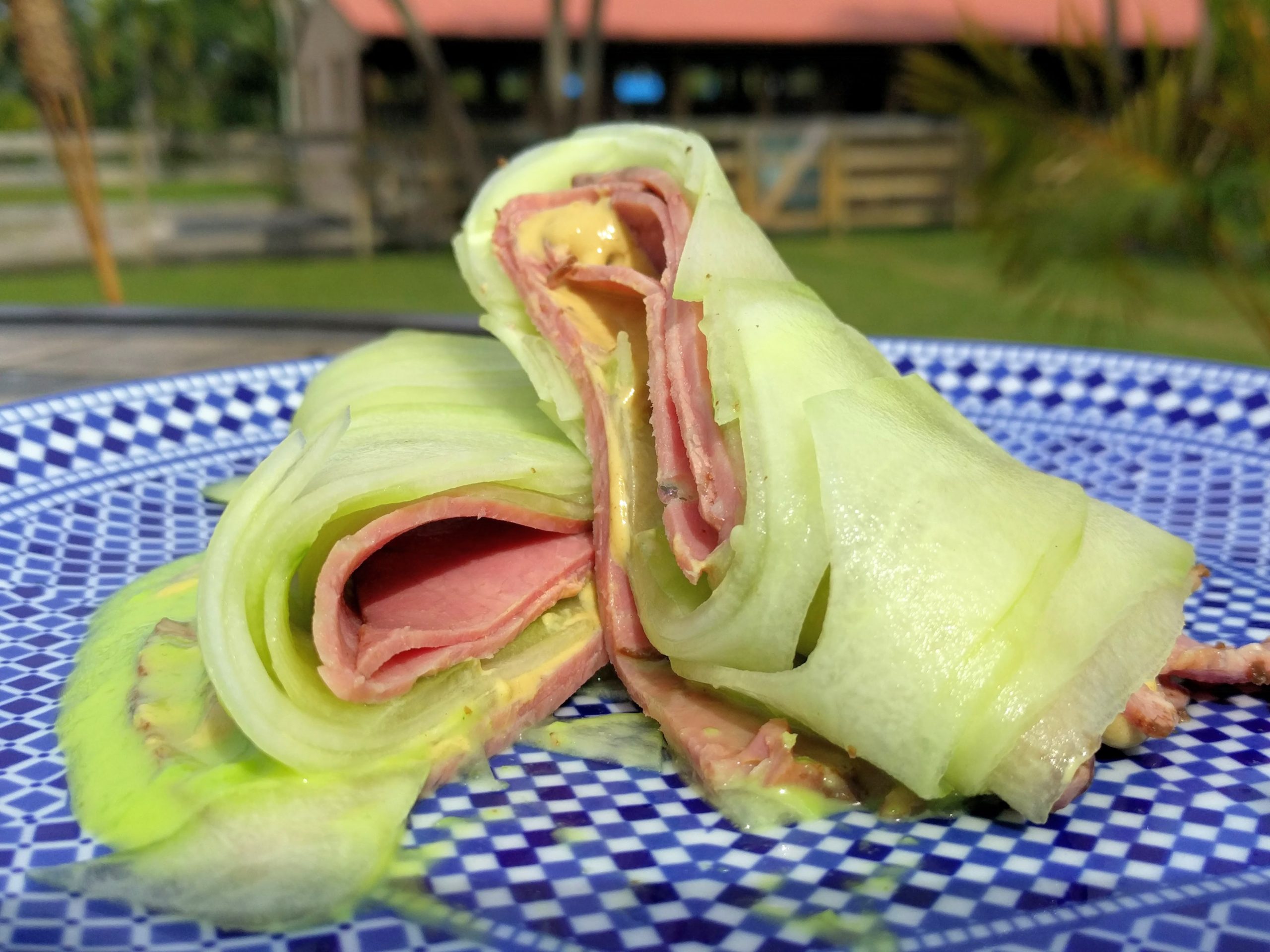 This is an easy to make and attractive meal in one. Make it with sliced pastrami, roast beef, turkey breast or salami. This cucumber wraps packs in flavor, protein and a nutrients in a satisfying portion.