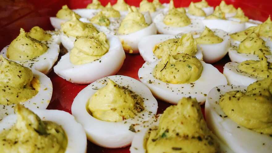The well-loved classic devilled eggs recipe will always be people's first choice. The rich and smooth yolk filling stuffed in the middle of eggs creates a delightful recipe perfect for any time snacking.