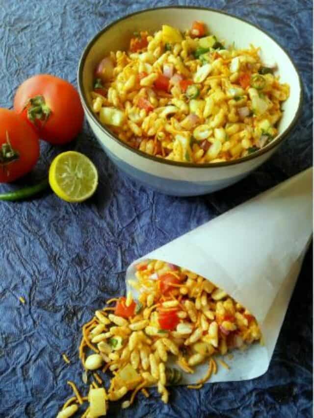 To make a quick snack, try the Mumbai-style bhel puri with chopped veggies, murmura, and chutneys.