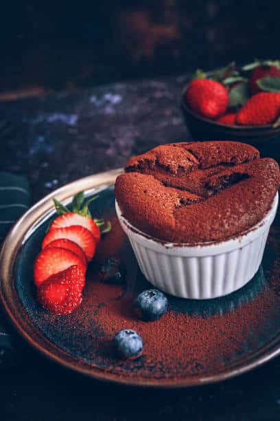 This soufflé relies on technique rather than ingredients. High-quality dark chocolate and eggs create a light structure with deep chocolate flavour. It is best baked and served immediately, when the centre is still soft and airy.
