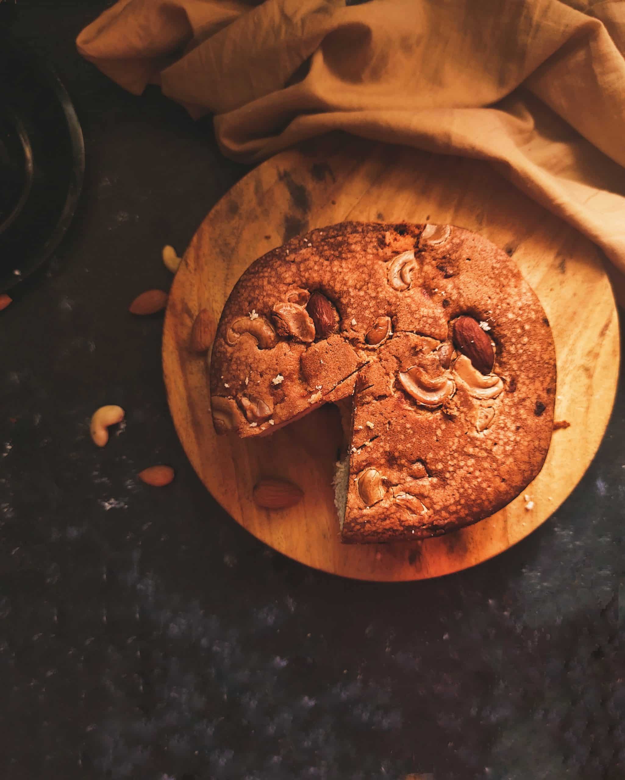 Whisk eggs with sugar, then fold in ground almonds and orange zest. Bake until golden and firm. Let it rest before serving so the crumb settles.