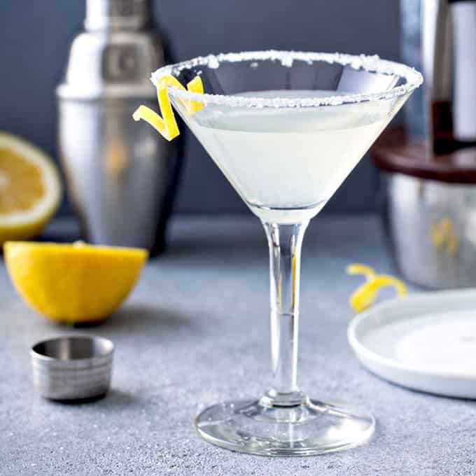 Combine gin or vodka with dry vermouth, stir with ice and garnish it with an olive and enjoy the classic cocktail!