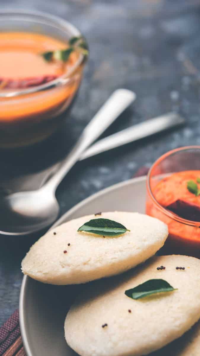 Stuff some mint-coriander or spicy garlic chutney into the idlis for a spicy twist to the plain idlis. This will not need anything to pair up with but just some tempering with mustard seeds and oil, and it’s ready as a party snack!