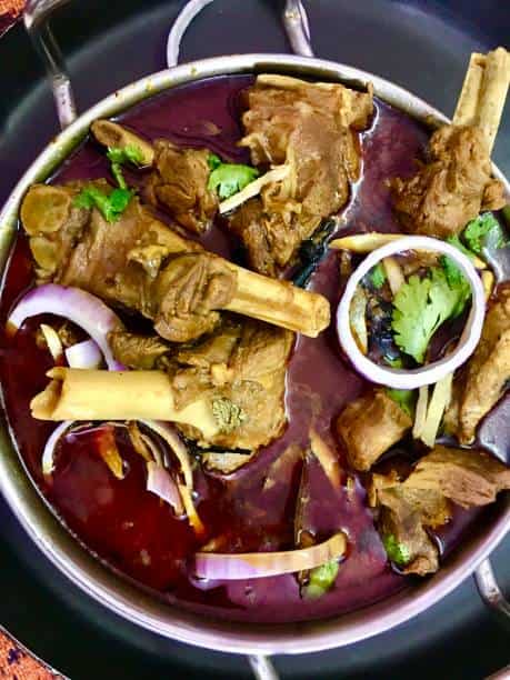 The root of a herb known as rattan jot is added to the authentic recipe, giving it its crimson hue.