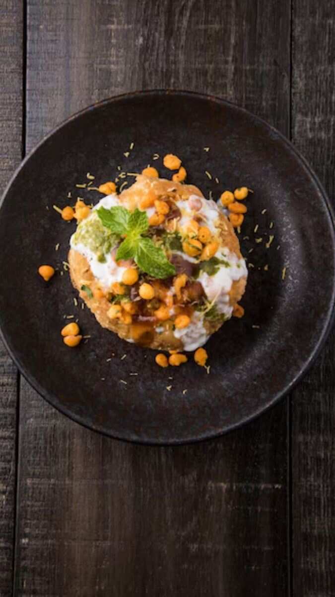 Raj kachori might be known by different names in India, but it is a delicious mix of crispy kachori filled with boiled potatoes, chickpeas, curd, and chutneys. It is topped with sev.