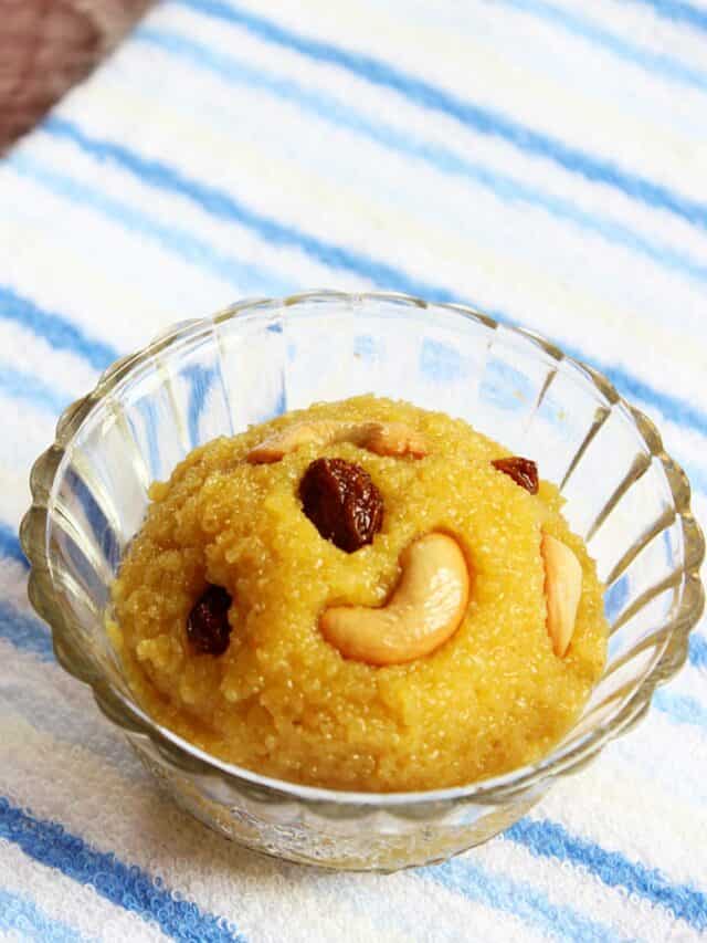 This kesari halwa recipe is a rich Indian dessert made with semolina or sooji, pistachios, saffron, and ghee. The use of saffron gives it the kesari colour. Here is a super-easy recipe to try.
