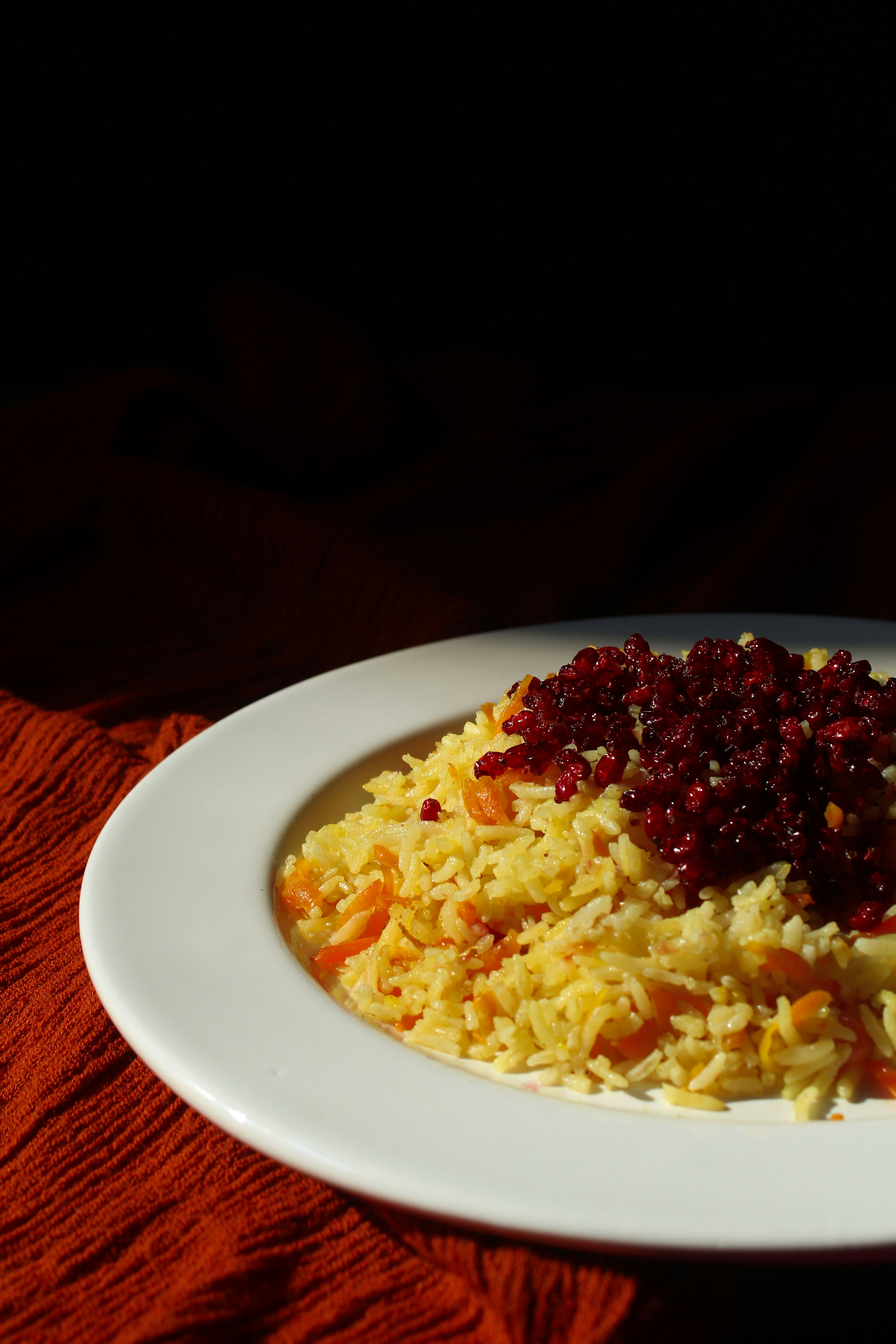 Once aromatic, add the cooked rice, saffron, and chopped nuts like almonds, cashew nuts, and raisins.