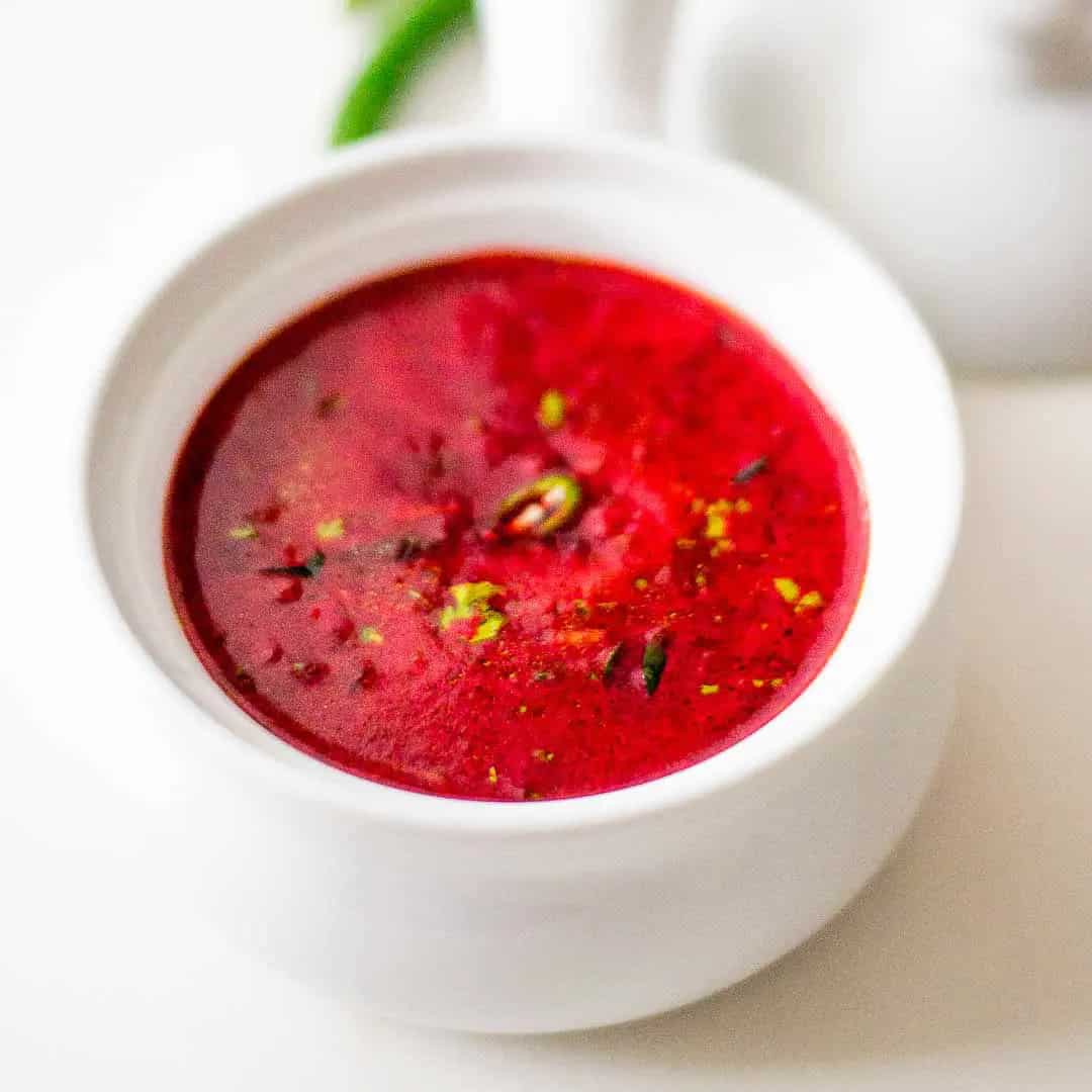 Beetroot rasam is light, hydrating and naturally rich in antioxidants. Beetroot contributes folate and potassium, while pepper and cumin add gentle warmth that suits winter meals. The dish remains low in fat and easy to digest, making it suitable for regular consumption.