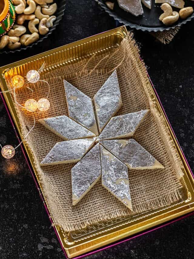 Soan papdi is a must-add for festivities. You can add the flaky sweet to your pooja thali.