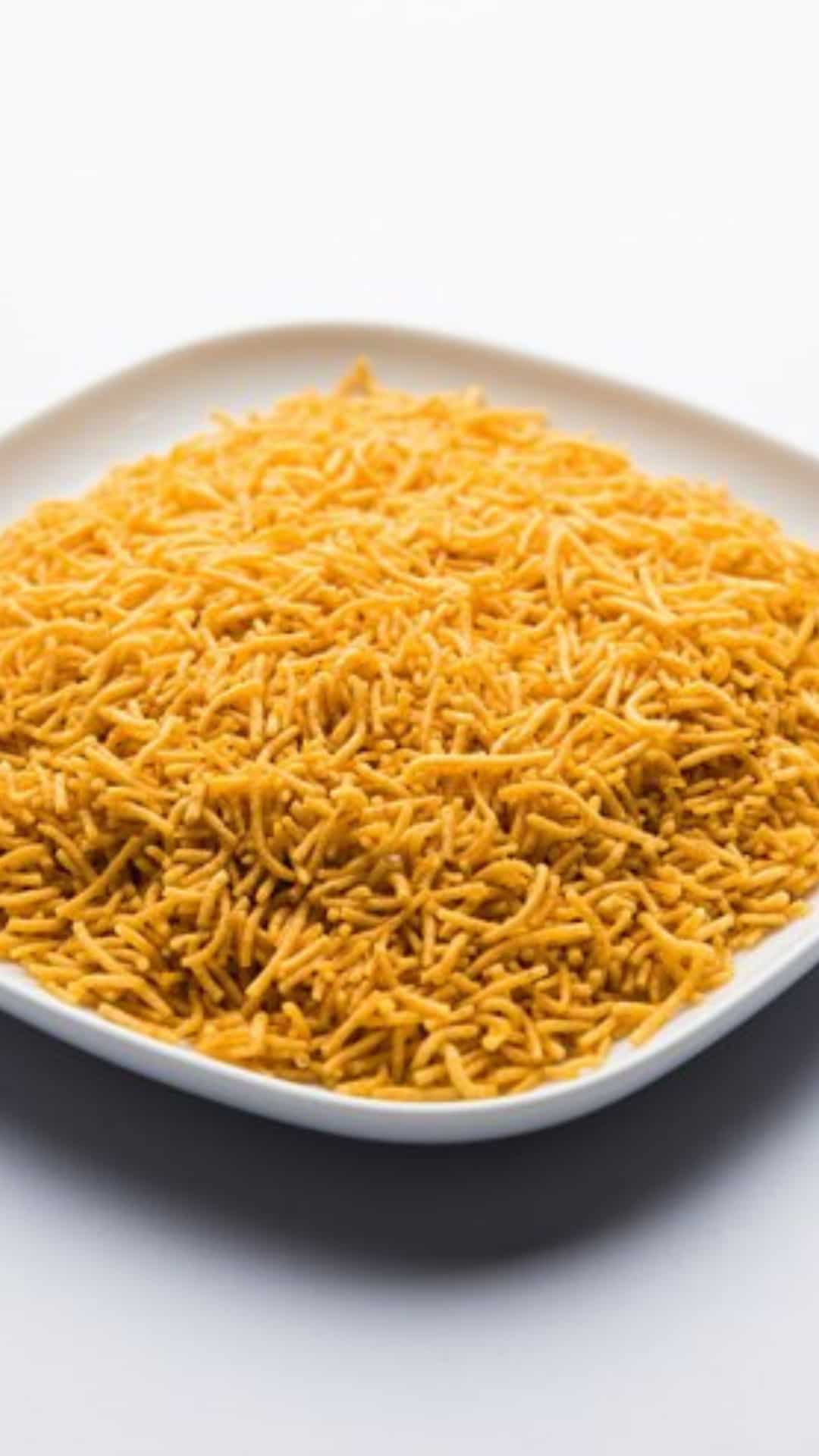 Take the fried bhujia out, drain the excess oil, and enjoy the crispy snack.