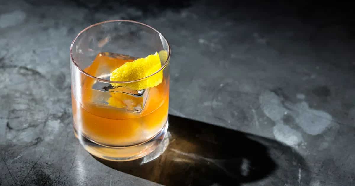45 ml bourbon or dark rum 20 ml fresh orange juice 10 ml honey syrup A pinch of ground cinnamon or nutmeg Ice Orange peel