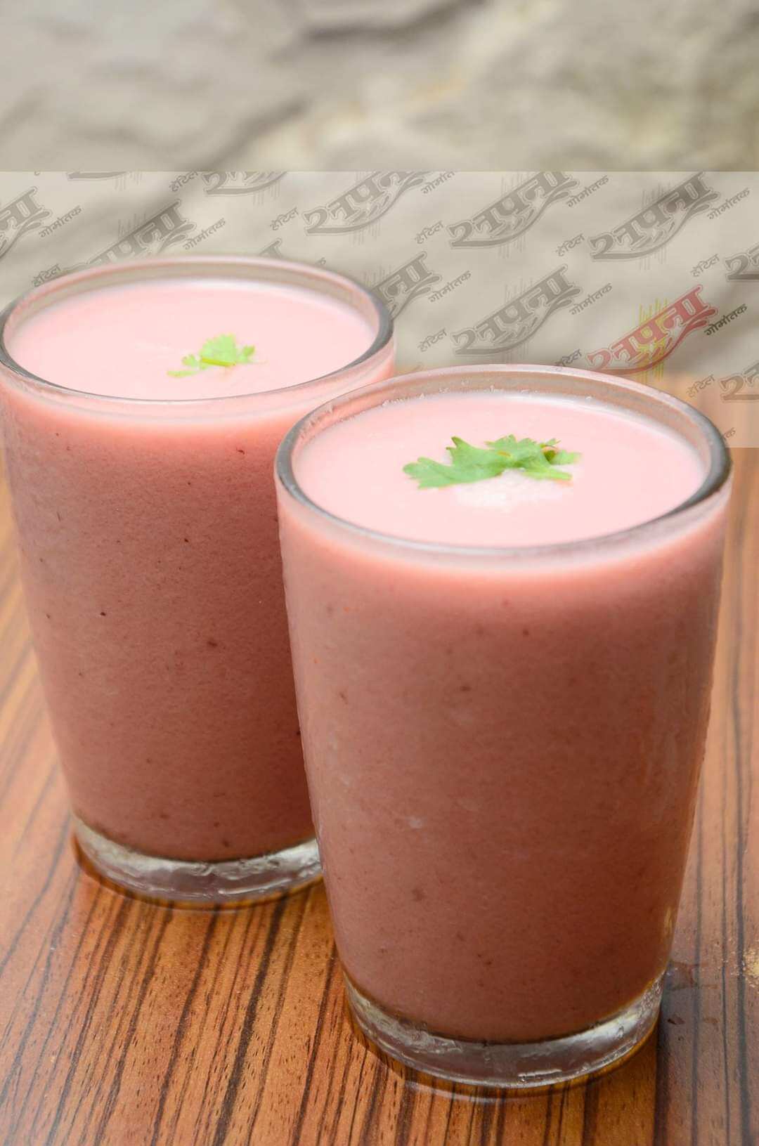 This refreshing cool drink is made from kokum pulp, jaggery and ice cubes along with a hint of mint.