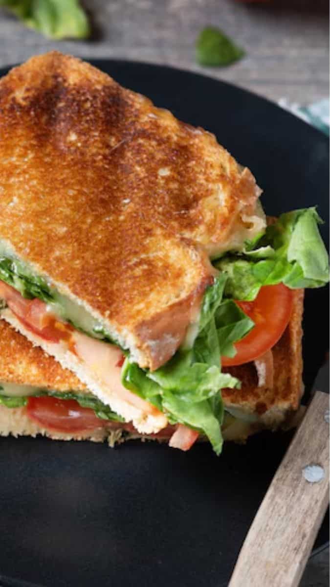 Press the sandwich gently and slice it in half, and serve it fresh. You can also lightly toast it for a warm, melty bite.