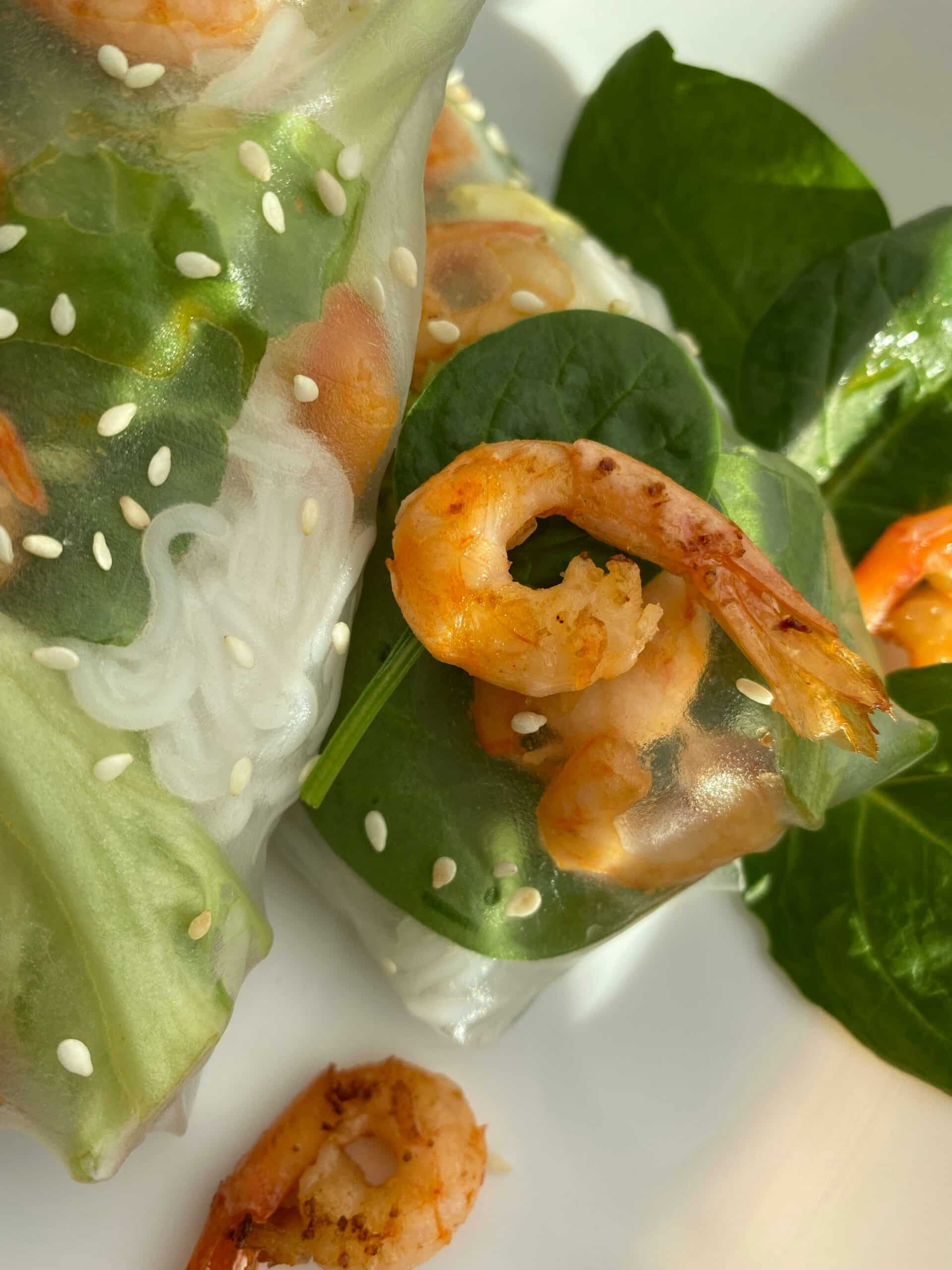 5-6 rice paper sheets ¼ cup red cabbage, shredded ¼ cup cucumber, sliced thinly 8-10 prawns ¼ cup spring onion, sliced 1 teaspoon soy sauce 1 teaspoon sesame oil Salt and pepper, to taste